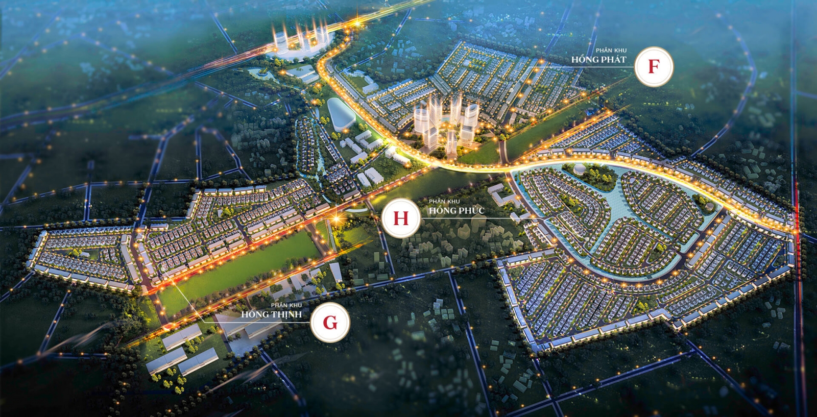 Khu đô thị được quy hoạch gồm nhiều cụm tổ hợp tiện ích, dịch vụ đô thị gồm: Giáo dục, y tế, mua sắm, thương mại, khách sạn, công viên, căn hộ; cùng 3 phân khu nhà ở thấp tầng có tên gọi lần lượt là: Hồng Phát, Hồng Thịnh và Hồng Phúc. Tổng sản phẩm 3 khu là 2884 căn biệt thự đơn lập, song lập, nhà phố liền kề, nhà phố thương mại. Tổng vốn đầu tư khu đô thị khoảng 27.000 tỷ đồng.