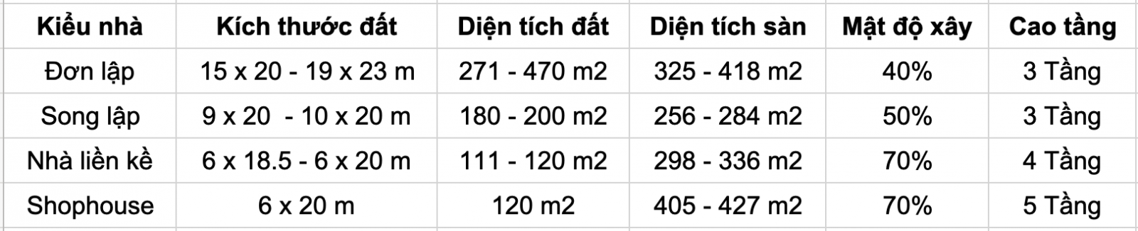 Kích thước lô đất: 16 x 20 / 16 x 23 / 15 x 20 m, xây 3 tầng, hoàn thiện mặt ngoài theo phong cách tân bán cổ điển của Pháp và giao thô bên trong.