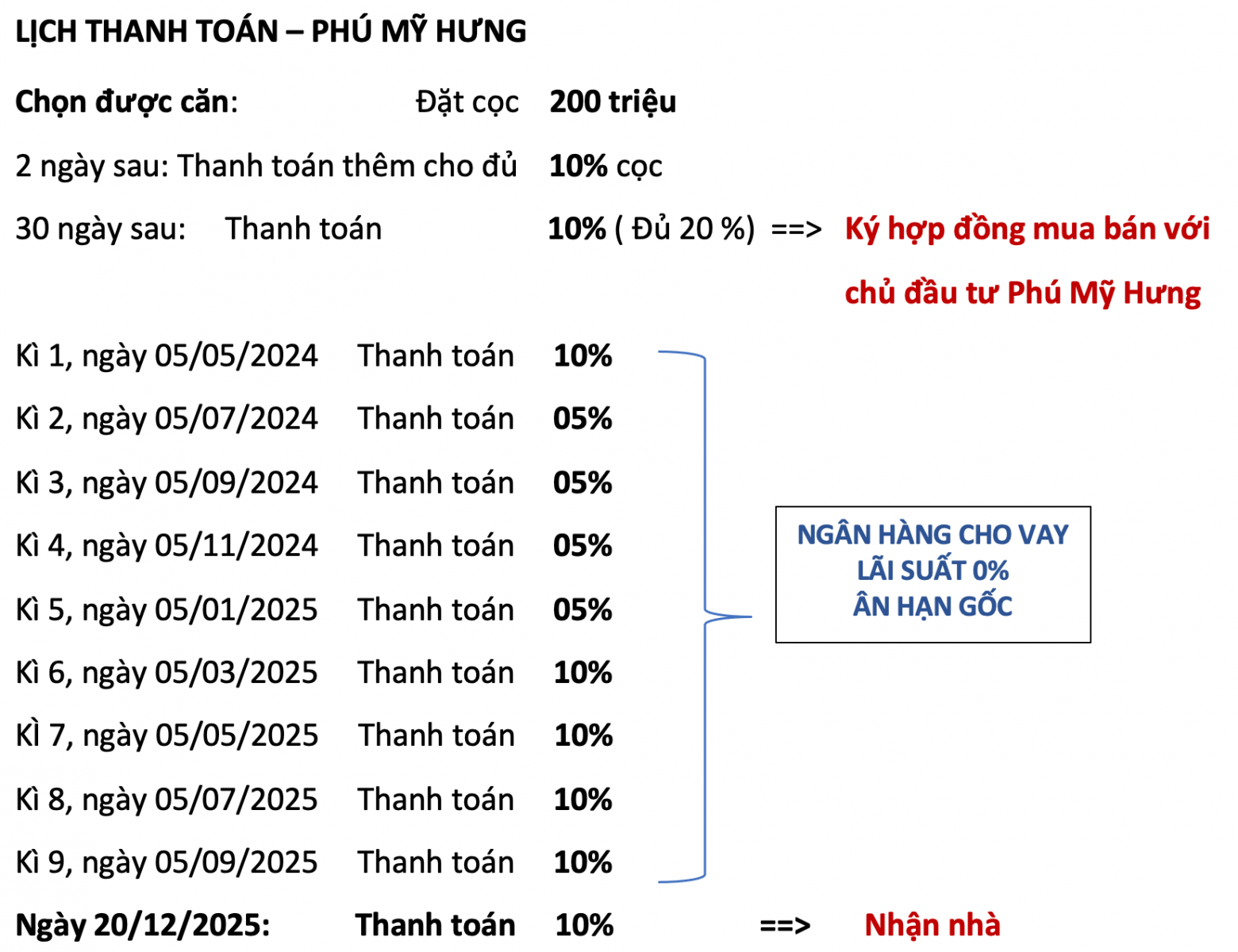 Thanh toán linh hoạt, hỗ trợ lãi suất 0% đến khi nhận nhà.
