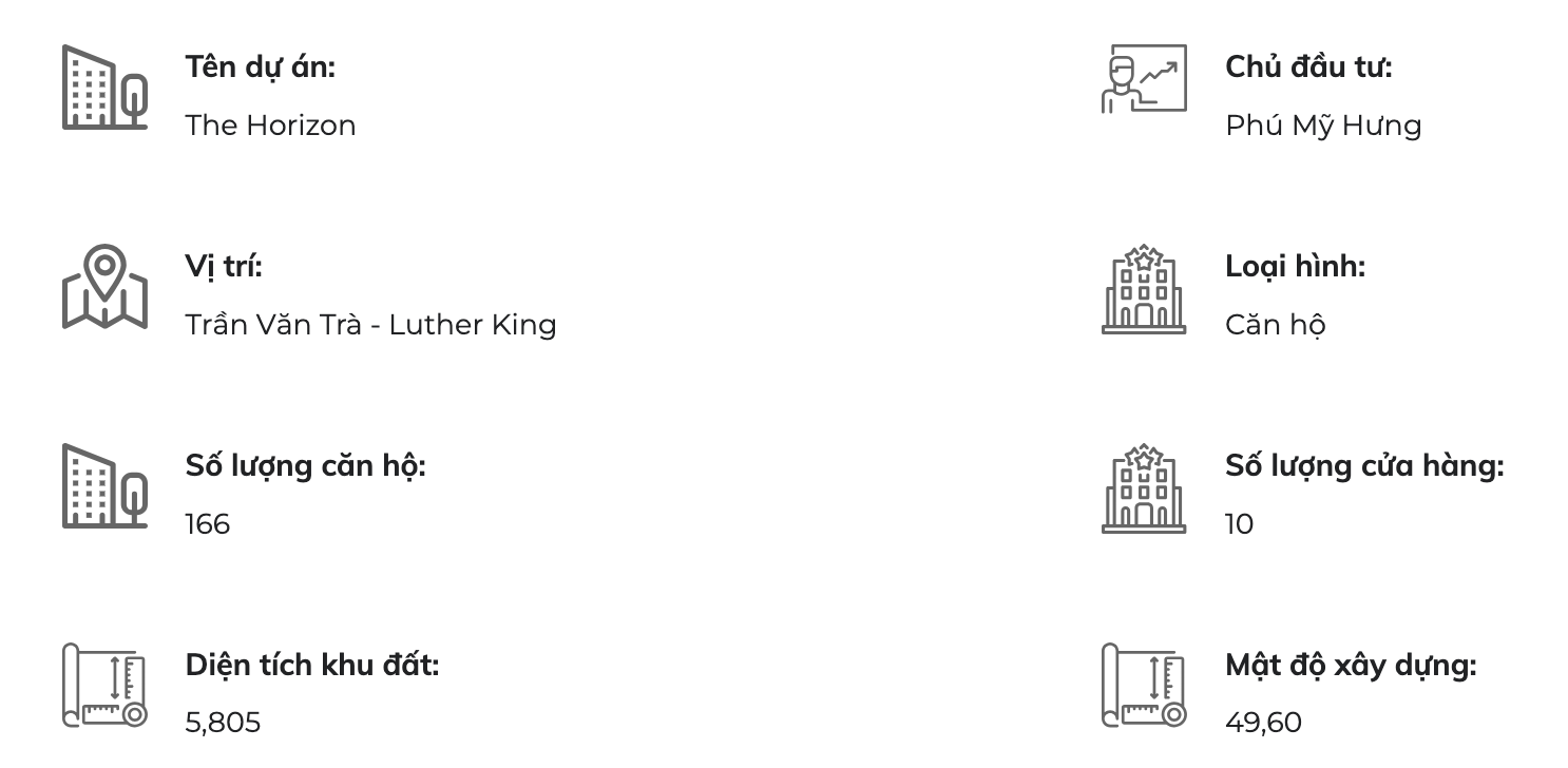 Phú Mỹ Hưng The Horizon – Bản tuyên ngôn kiêu hãnh và vô giá định lượng dành cho cộng đồng danh thế bậc nhất, tọa lạc ngay trung tâm dịch vụ quốc tế The Crescent và bên 2 địa danh nổi tiếng Hồ Bán Nguyệt, Cầu Ánh Sao. Chỉ một bước chân, từ Phú Mỹ Hưng The Horizon mở ra cả thế giới dịch vụ – thương mại – giải trí – ẩm thực – mua sắm được thực hiện bởi những thương hiệu toàn cầu. Phồn hoa, hiện đại, sầm uất, năng động; nhưng mỗi ngày, Phú Mỹ Hưng The Horizon vẫn được thiên nhiên đưa trọn hương gió, khí trời, cỏ cây đến từng góc sống khi ngay ngưỡng cửa là hệ cảnh quan tuyệt sắc của sông hồ, công viên rộng đến 7,4 hecta và một miền sinh cảnh bảo tồn nguyên thủy vùng đất Nam Sài Gòn xa xưa.
