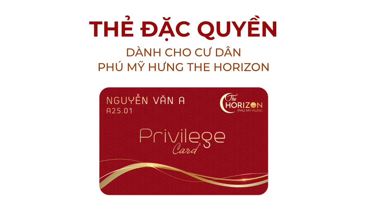 Chương trình thẻ đặc quyền chỉ áp dụng dành cho khách hàng đứng tên trên hợp đồng mua căn hộ dự án The Horizon. Mỗi người đứng tên trên hợp đồng sẽ được đăng ký 1 Account thẻ đặc quyền, khách hàng sẽ cung cấp thông tin Họ Tên, SĐT chủ thẻ để đăng ký (Thẻ sẽ được kích hoạt sau khi khách hàng thanh toán đủ 10% và kí hợp đồng đúng hạn)
